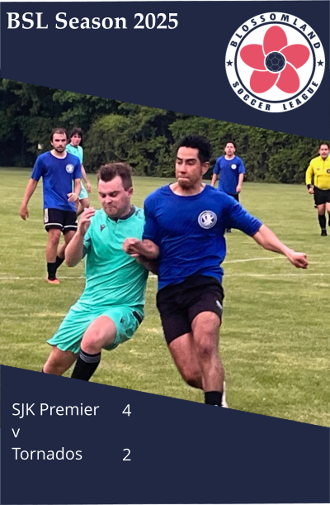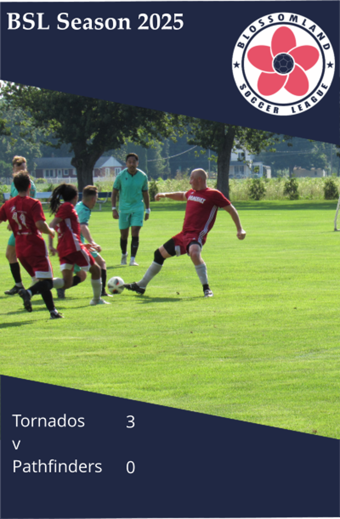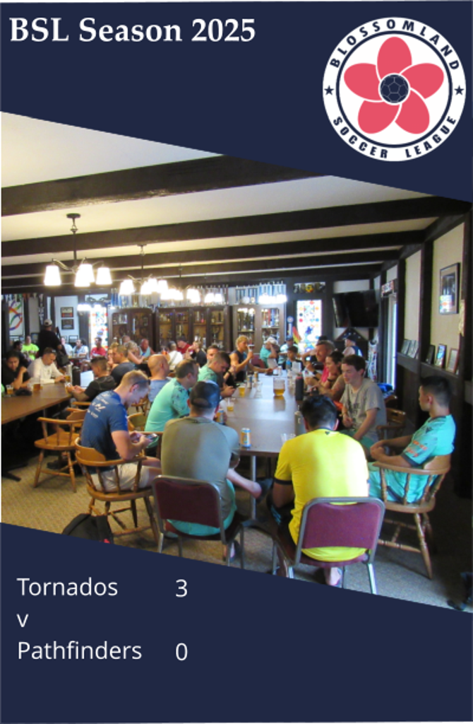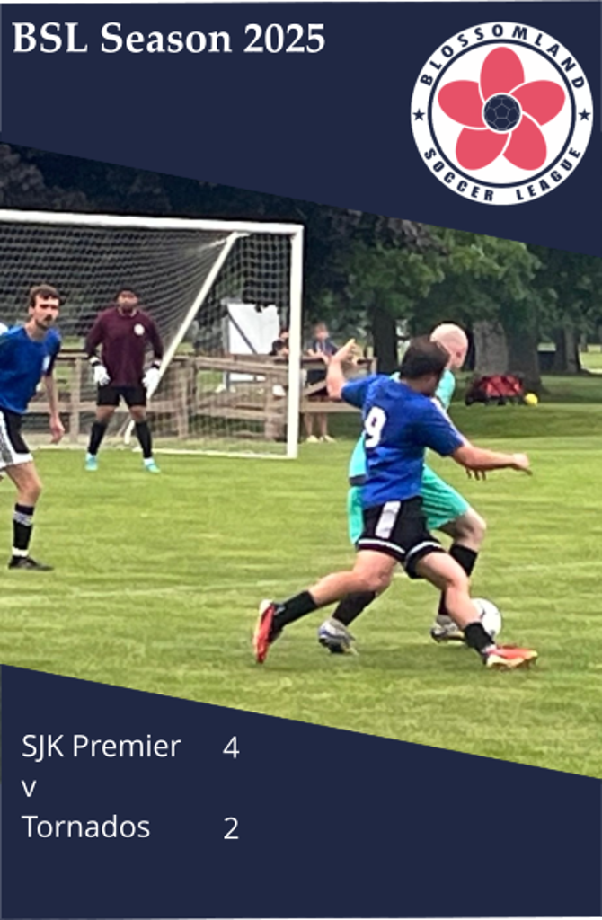 The Blossomland Cup Tournament schedule is July 20 (first round: first and sixth places get byes), July 23 / 24 (semi-finals), with finals to be held at St. Joe Kickers on July 27.